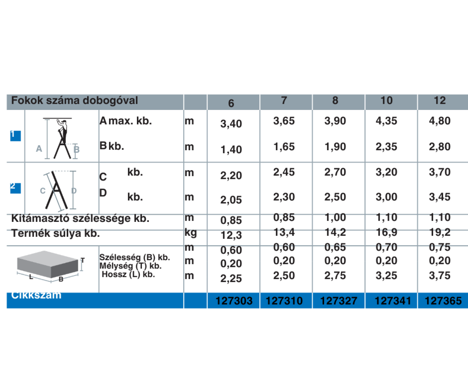 STABILO Gurítható lépcsőfokos, állólétra kitámasztóval