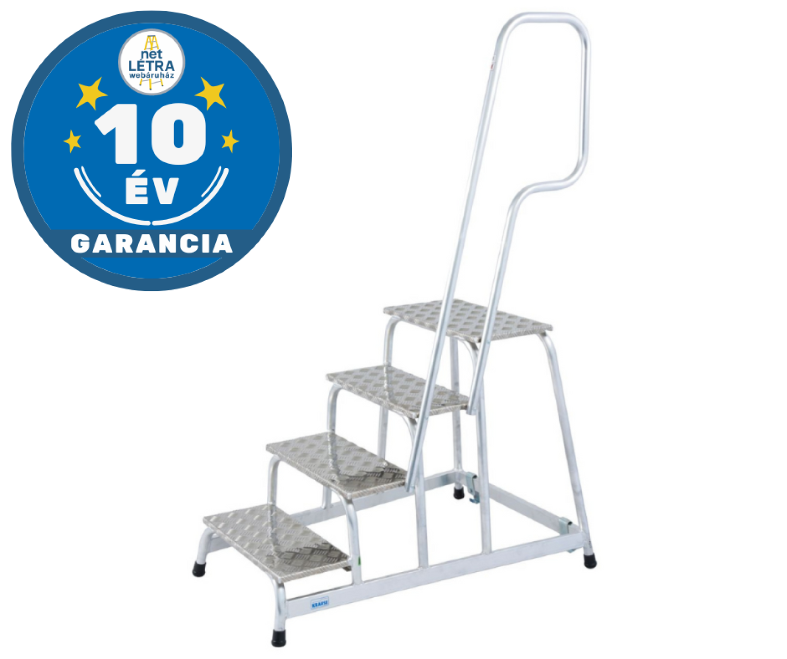 Krause könnyű, gurítható alumínium szerelődobogó csúszásmentes fokokkal és kapaszkodóval ideális a fokozott igénybevételt jelentő felhasználási területeken.