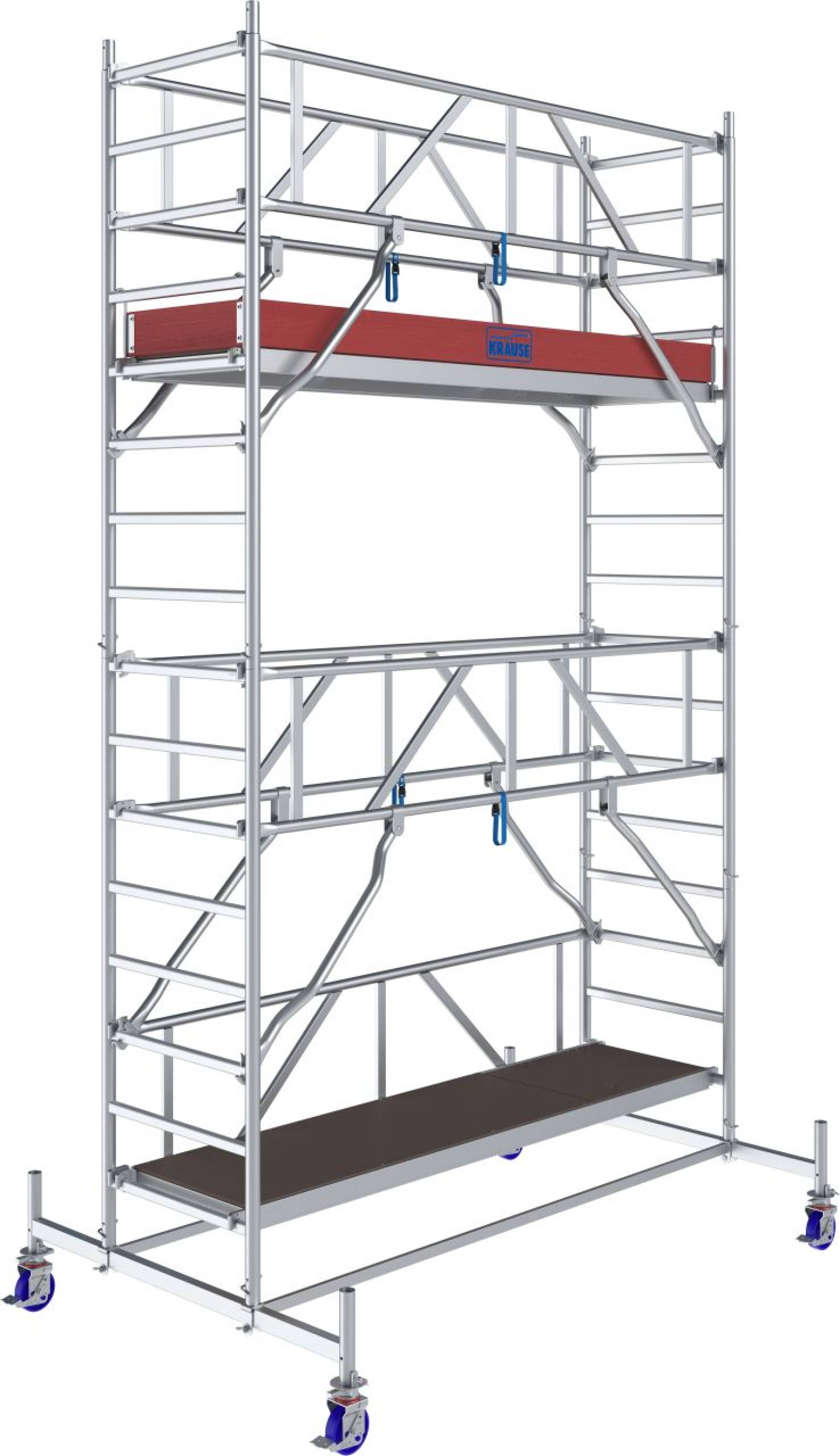 - A 6 ponton biztosított GuardMatic-System® garantálja a maximális stabilitást a magasban. Az egyedülálló, önzáró és formazáró KRAUSE csatlakozórendszere az állvány egyszerű és gyors felépítését és lebontását teszi lehetővé