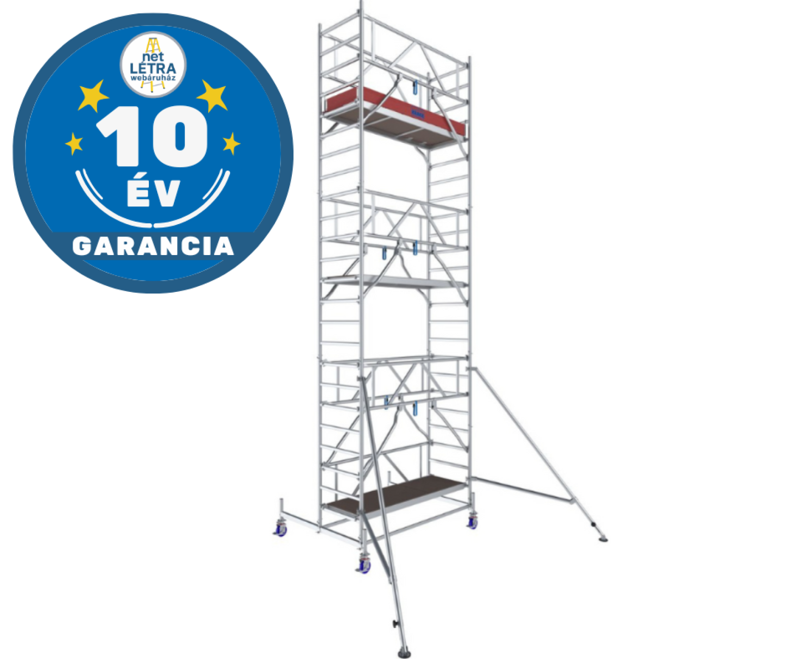 Professzionális alumínium gurulóállvány a gyors és biztonságos munkavégzéshez.