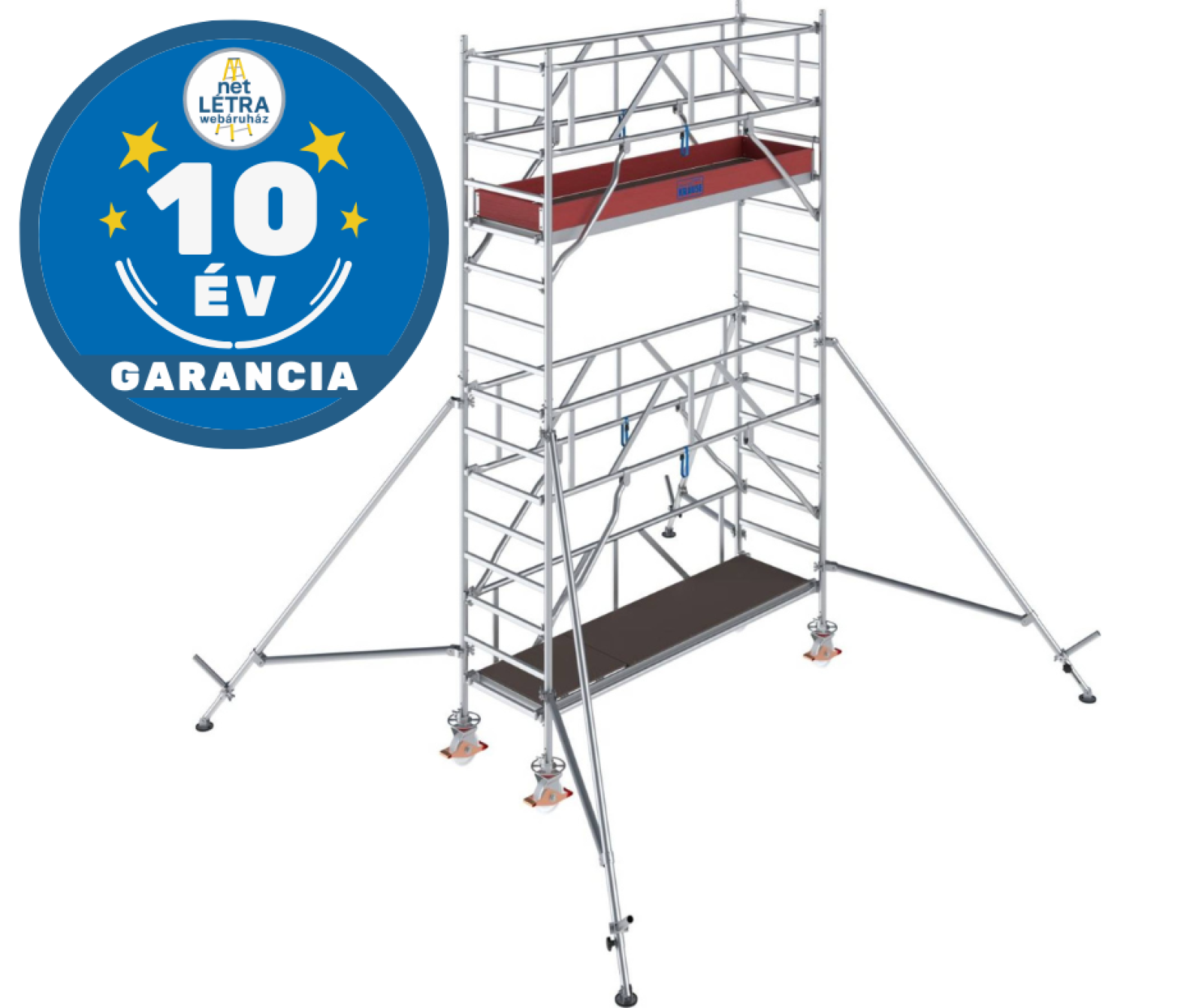 - Univerzális alumínium gurulóállvány 14,30 m munkamagasságig (2,00 m-es mezőhossznál 12,30 m-ig)