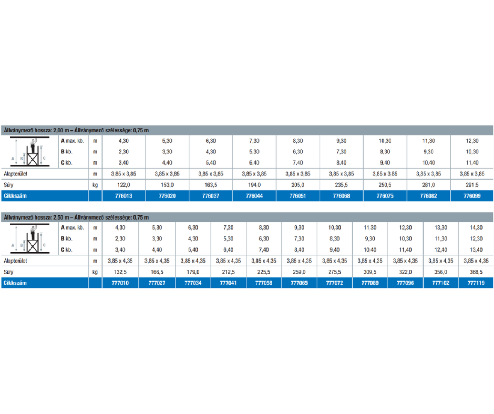 | 889 850 Ft.- | 2,50x0,75 m, munkamagasság: 4,30 m | 777010 | |