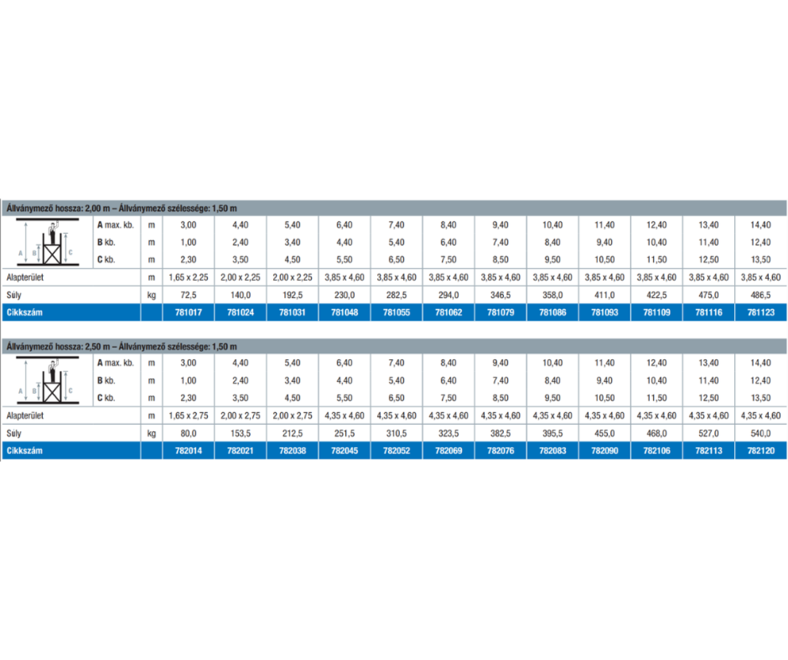 | 767 130 Ft.- | 2,00x1,5 m: munkamagasság: 4,40 m | 781024 | |