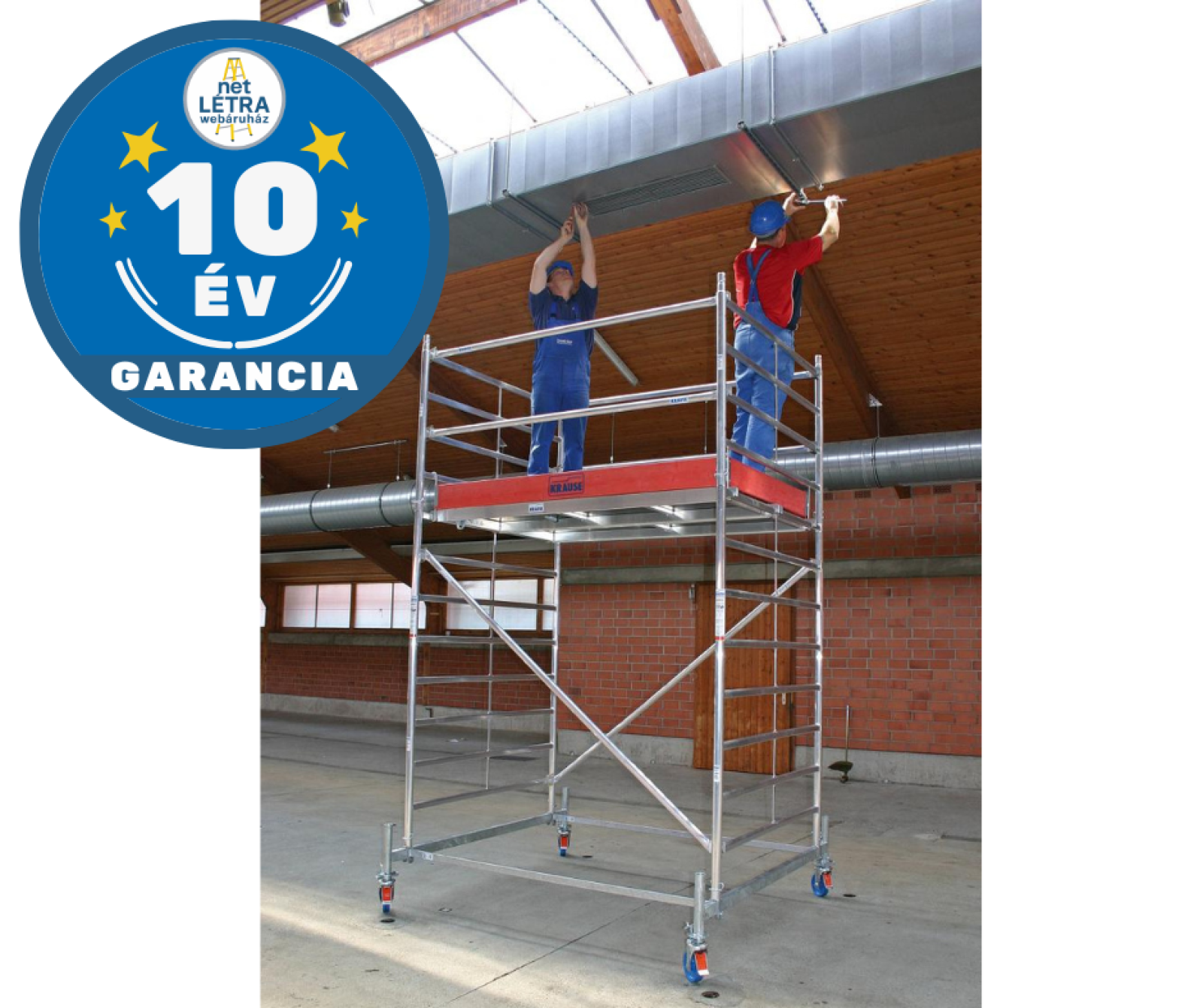 - TÜV által bevizsgált, az EN1004 szabvány előírásai szerint gyártott állvány max. 200 kg/m2 terhelhetőséggel (állványcsoport 3)