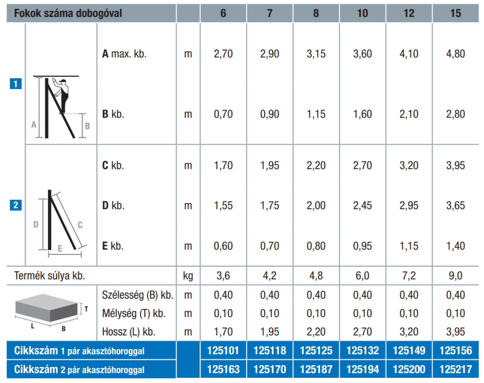 | 100 160 Ft.- | 2 pár akasztóhoroggal, 15 fokos | 125217 | |