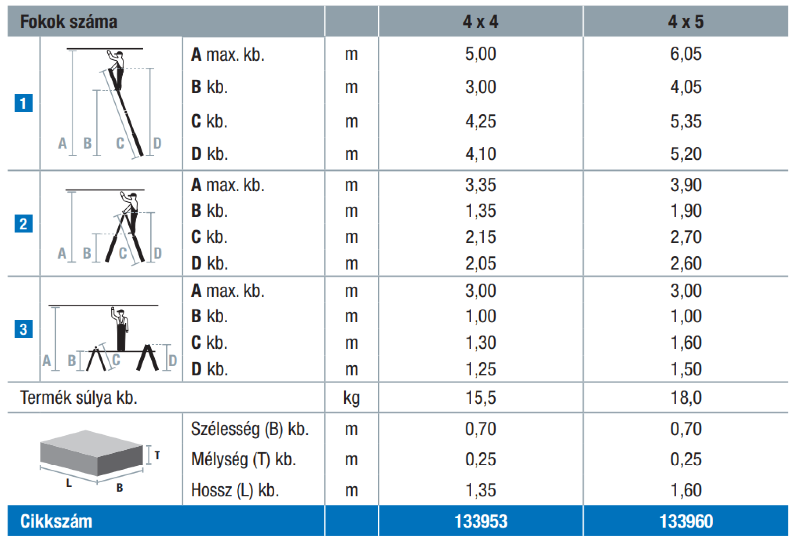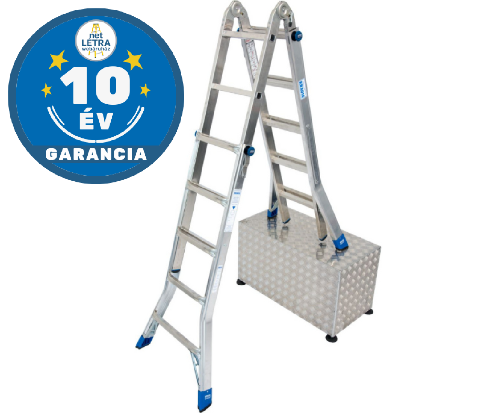 - Támasztólétraként, két oldalon járható állólétraként és munkaemelvényként is használható