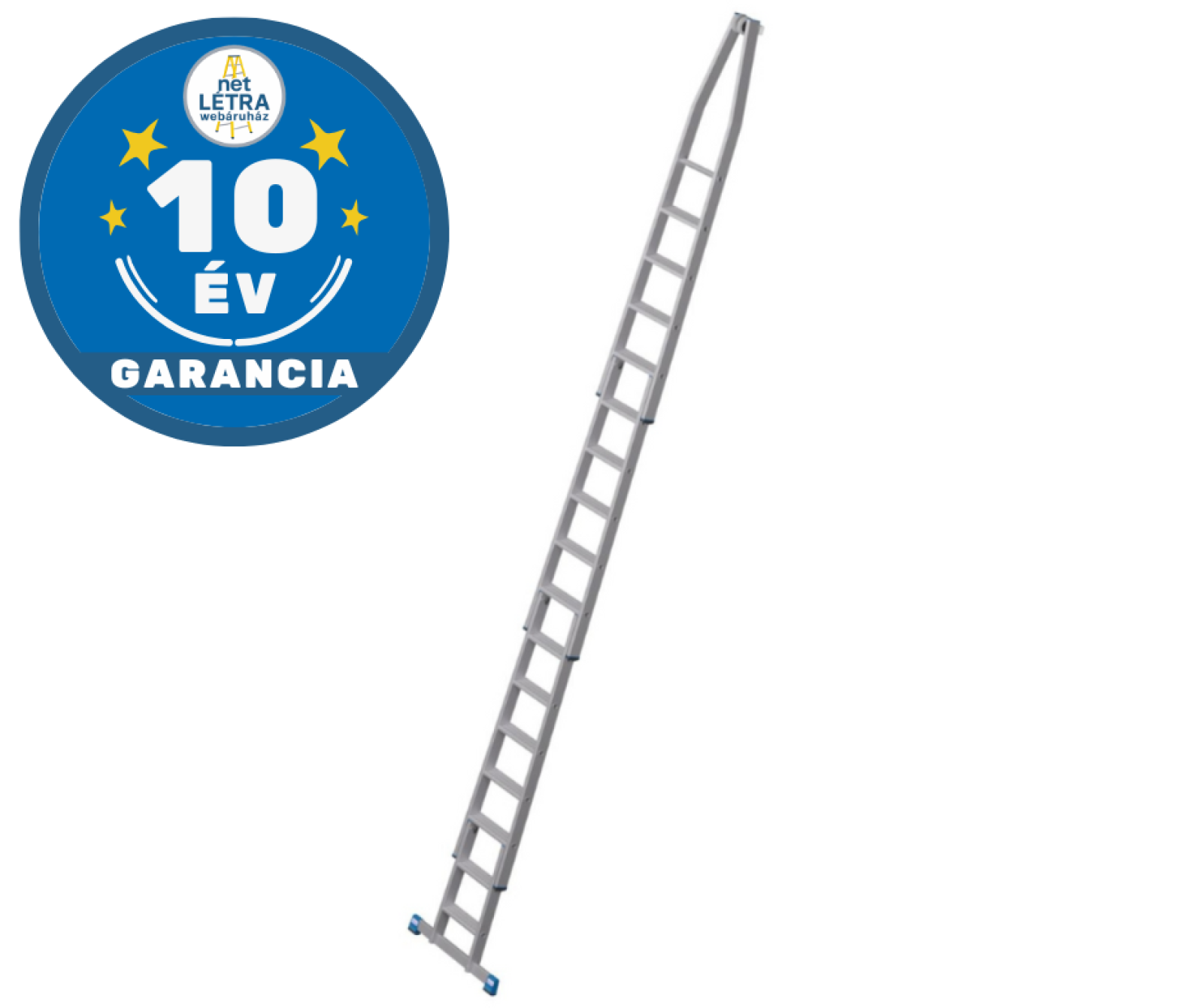 - A létra felső tagja fali vezetőgörgőkkel és kopásálló, puha gumi anyagú érintkező blokkal, ékkivágással, mely házsarkakra és ablakprofilokra helyezhető