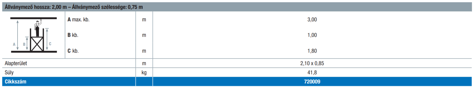 | 299 390 Ft.- | 2,00x0,75 m: munkamagasság: 3,00 m | 720009 | |