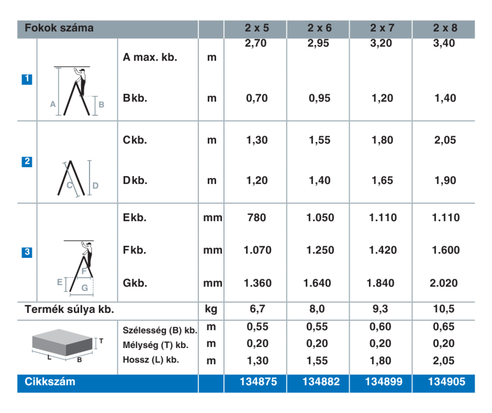 • Profilozott, megerősített D-lépcsőfokok, 80 mm mély, a biztonságos feljutás és kényelmes állás érdekében. A TRBS 2121-2 szabványnak megfelelően a lépcsőfokok munkahelyként is használhatók