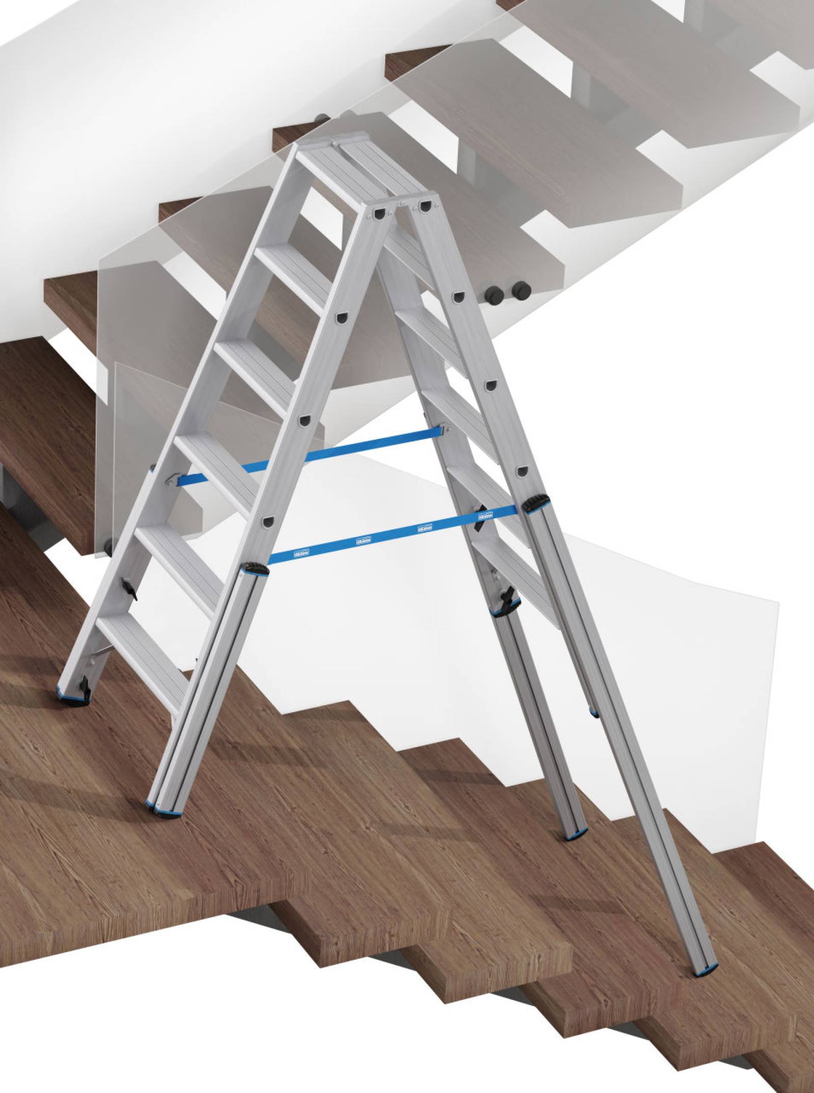 Ez a professzionális használatra kifejlesztett alumínium teleszkópos Krause két oldalon járható létra lépcsőfunkcióval nagy stabilitást biztosít még lépcsőkön, sarkokban, emelvényeken és hasonló magasságkülönbségek esetén történő használat során is.